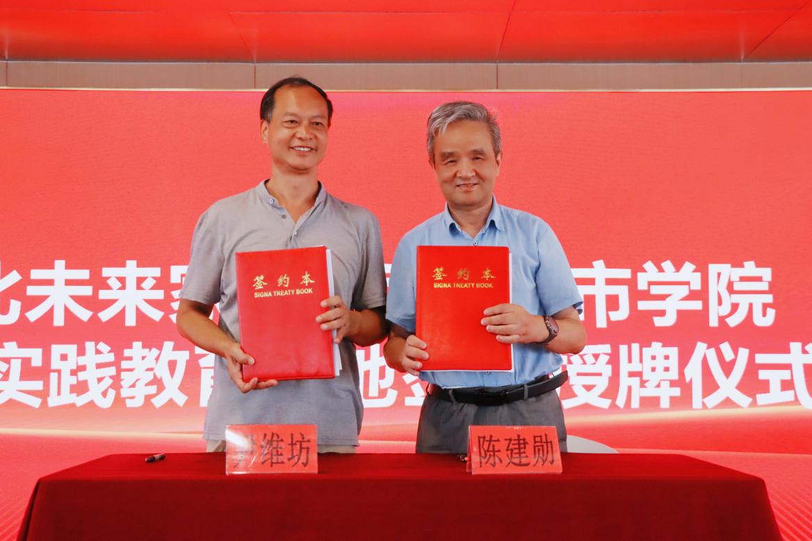 会上,陈建勋与湖北未来科技高科技农业股份有限公司董事长尹维坊共同签订了劳动实践基地合作协议。武汉城市学院授予湖北未来家园高科技农业股份有限公司“劳动教育实践基地”牌匾。
