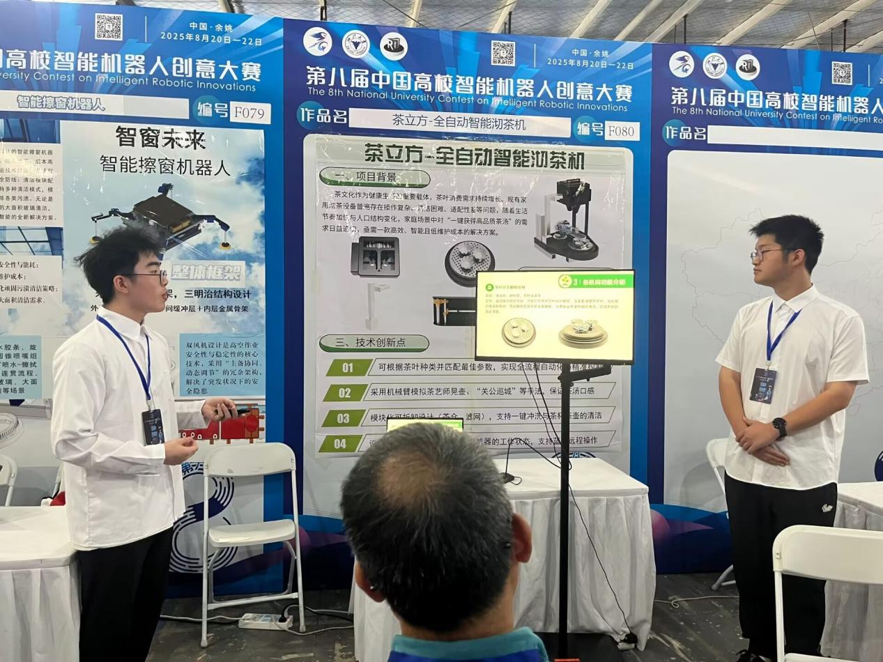 其中,由23级机器人工程专业的熊亮、张靖泽与23级自动化专业的蒋力三人组成团队,设计的“茶立方——全自动智能沏茶机”荣获一等奖。谈及设计灵感,队长熊亮表示,源于歌词“爷爷泡的茶,有种味道叫做家”所传递的温暖怀旧情感。这款沏茶机巧妙融合传统茶文化韵味与现代智能科技,能精准把握茶叶用量、水温、冲泡时间等关键参数,针对绿茶、红茶、乌龙茶等不同品类自动选择最优冲泡方案,从投茶、注水到出汤全程自动化。在现场答辩环节,赢得评委阵阵好评,最终毫无悬念斩获国家级一等奖。