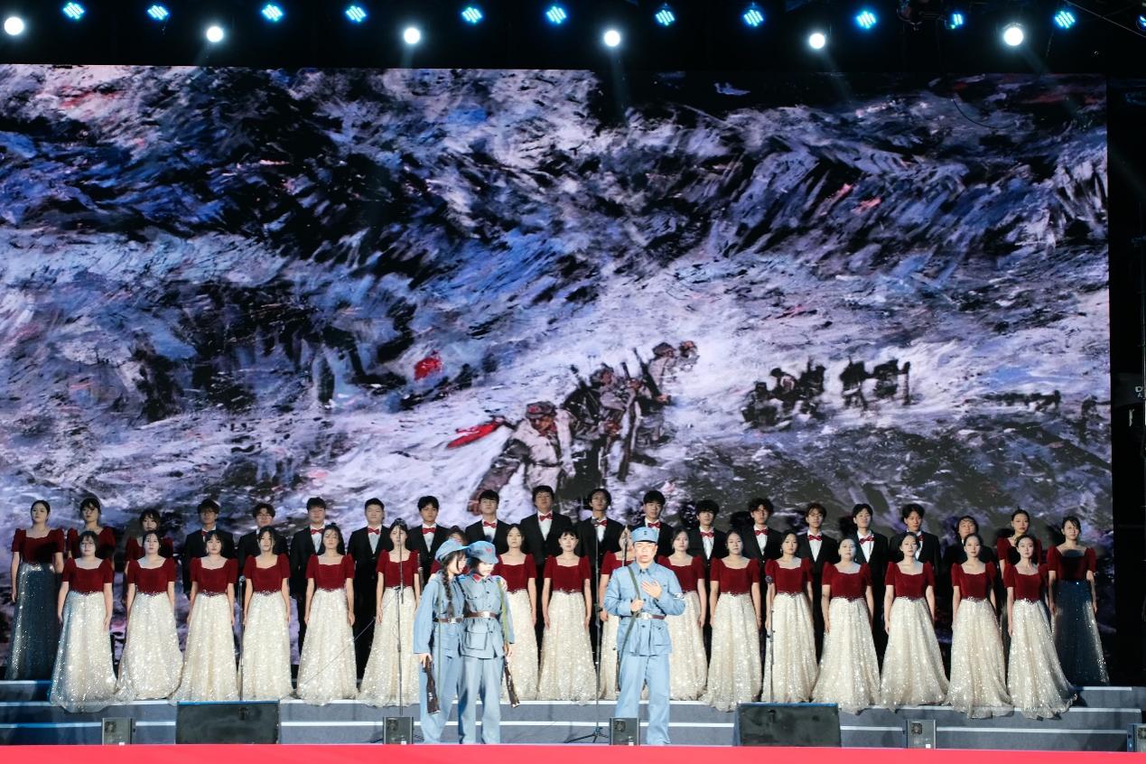 医学部带来的合唱《映山红》以悠扬深情的歌声,再现革命年代“夜半三更盼天明”的期盼。歌声中既有对历史的追忆,也有新时代青年“敢教日月换新天”的豪情壮志。