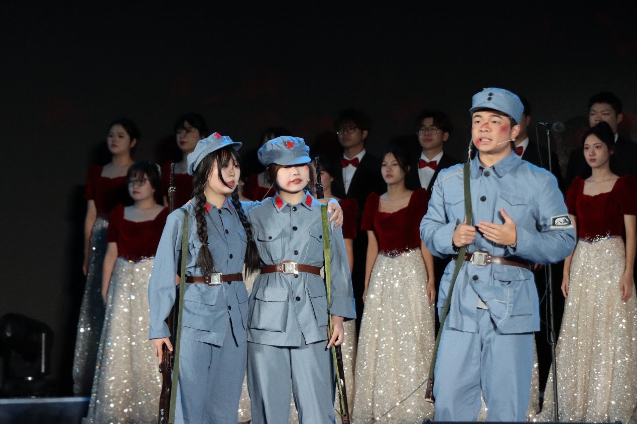 歌曲《有我》以激昂的旋律唱出新时代青年的担当。“强国之路,有我!民族复兴,有我!”的歌声响彻会场,展现城院学子接过历史接力棒的坚定决心。
