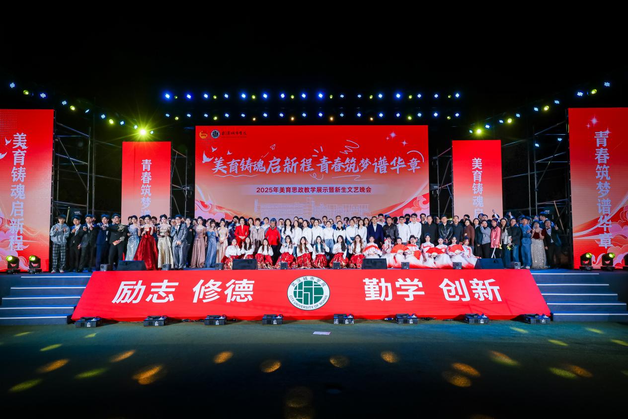 晚会在全体演职人员的谢幕中落下帷幕。整场演出不仅是一场视听盛宴,更是一堂生动的美育思政课,将红色文化、时代精神与青年成长紧密相连,激励2025级新生在武汉城市学院的沃土中坚定信念、锤炼本领、勇担使命。