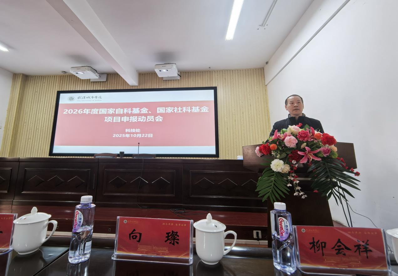 新闻网讯(通讯员 陈伊兰)为系统部署2026年度国家级科研项目申报工作,充分调动广大科研骨干教师的积极性,精准把握基金申报动态与要求,有效提升项目申报质量与成功率,10月22日,学校科技处在行政楼A332会议室隆重组织召开2026年度国家自然科学基金、国家社会科学基金项目申报动员会。会议特邀华中科技大学知名专家王宗军教授、陶红兵教授、向璨博士作专题报告。学校副校长赵光红、副校长董浩斌出席会议,科技处常务副处长柳会祥主持会议。