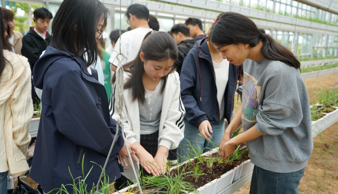 “刚才试着种月季才发现,它需要的耐心和细致,真的一点都不比金工实习做锤子少”“以前觉得拿起画笔坐下画几个小时画才最需要耐心,现在发现种地同样需要耐心……”“当亲手培的土、浇的水,最终变成沉甸甸的果实时,那种创造生命的敬畏和满足,瞬间填满了胸膛”劳动间隙,同学们围坐交流,话题从亲身体验逐渐延伸到对农业发展的观察。你一言我一语中,大家不仅总结着劳动中的心得,更在交流中认识到,从传统农艺到现代农技,生产方式虽在不断革新,但每一捧收获背后,依然凝结着同样的专注、耐心与对土地的尊重。
