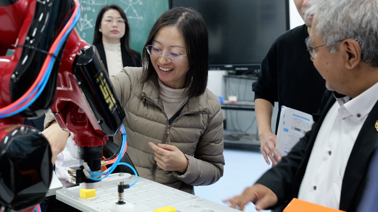 印尼代表团在相关教师陪同下,参观了医学部护理实训室、机电工程学部机器人实验室及城建学部实验室,实地考察学校的教学设施与科研环境。双方互赠纪念礼品并合影。