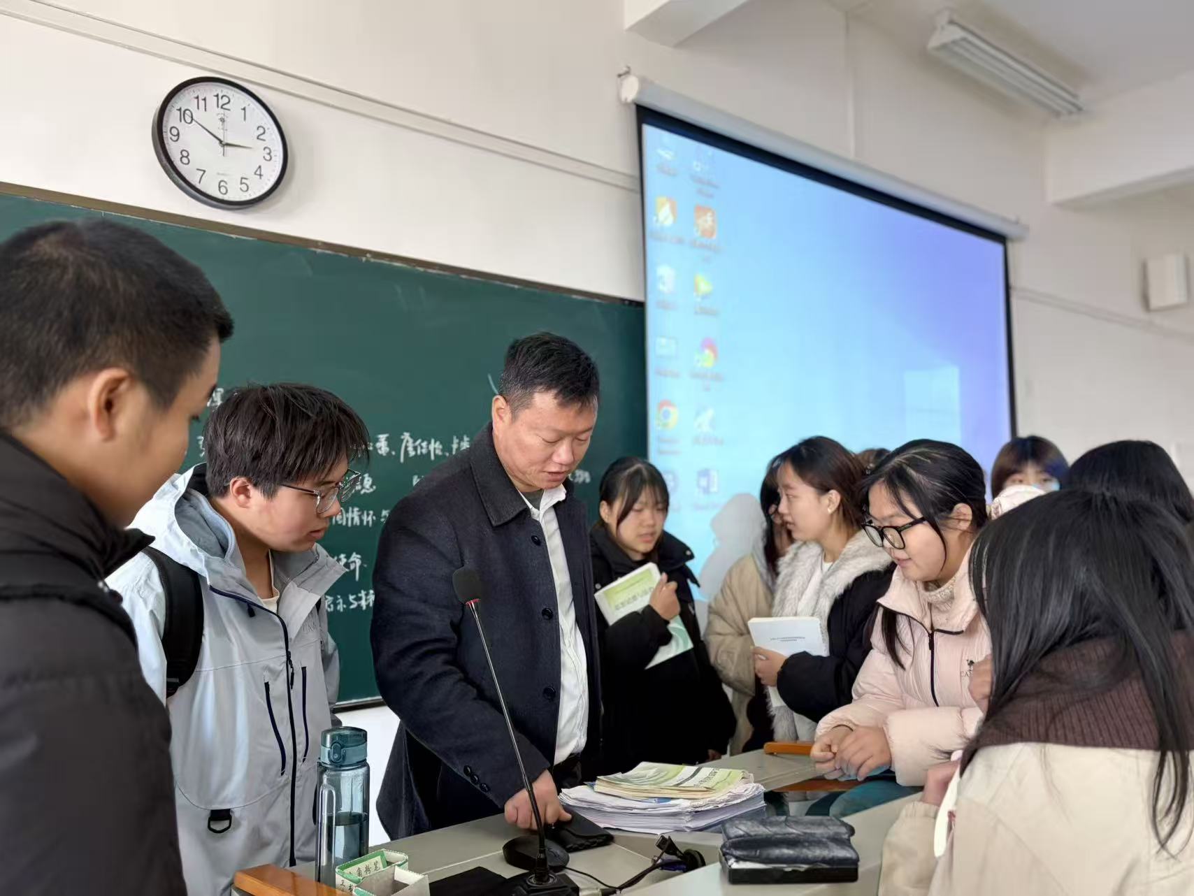课堂上,王祖法以舰为媒开启专题教学,结合106舰的过往征程与时代价值,深入浅出讲解国防建设与国家发展的紧密联系,将家国情怀、责任担当等核心思想传递给每一位同学,让理论知识在实景课堂中更易入心入脑。随后,各小组依次登台展示PPT成果,同学们以饱满的热情、清晰的逻辑,分享自己对舰艇历史、国防力量、青年担当的理解与感悟,精彩的展示引发现场师生强烈共鸣,掌声不断。教师逐一对各小组展示内容细致点评,结合舰艇实景延伸知识点,引导同学们在交流探讨中互学互鉴,在现场点拨中深化理解,让每一位同学都学有所获、思有所悟。护理二班的吴恩惠说:“一整个被军舰的雄伟壮观震撼到了,油然而生民族自豪感与安全感!”