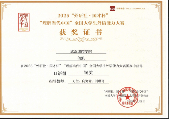 此次获奖成果丰硕,共囊括国家级铜奖1项,湖北省金奖3项、银奖4项、铜奖2项、优胜奖9项,获奖覆盖全部五大竞赛赛道。获奖学子凭借流利的语言表达、严谨的逻辑思辨与鲜活的中国故事叙事,在众多参赛选手中脱颖而出,不仅彰显了我校外语教育教学改革的显著成效,也为中外文化交流传播注入了青春力量。