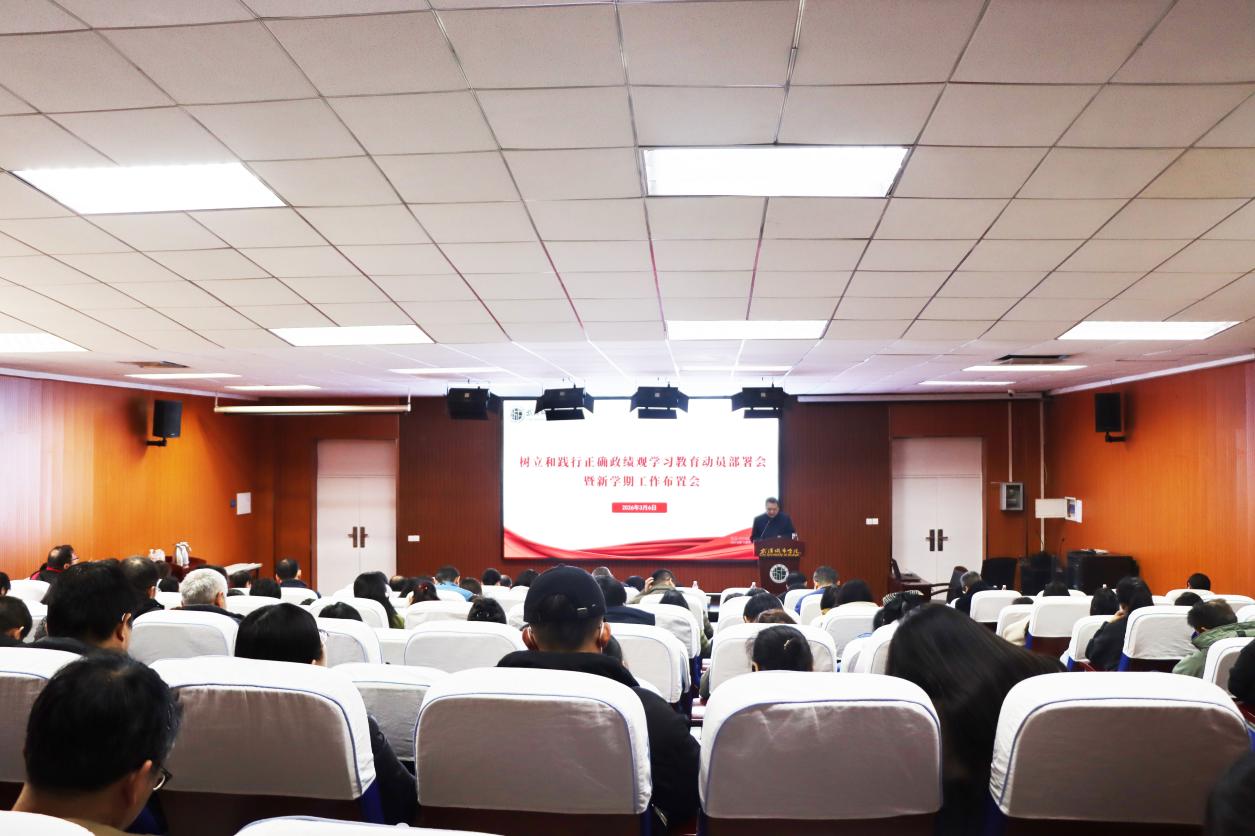 会议指出,开展树立和践行正确政绩观学习教育,是贯彻落实党的二十届四中全会战略部署的必然要求,是践行党的根本宗旨、夯实党的执政根基的重要举措。政绩观直接反映党性修养、宗旨意识和工作作风。全校党员干部要深刻认识到,有什么样的政绩观就有什么样的发展观,要进一步统一思想、统一意志、统一行动,扎实抓好学习教育的各项任务,引导全校各级党组织和全体党员干部校准政绩的导向,强化责任担当,切实把正确政绩观融入办学治校,立德树人的全过程,以实际行动迎接教育部2026年本科教学工作合格评估,用实干业绩为湖北支点建设作出贡献。