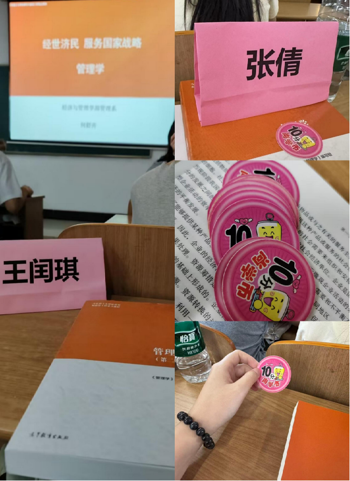 “我做了个特殊的决定——‘让学生出考题’”,期末复习时何老师要求学生按章节命题、交换作答,“出题比答题更难,得吃透全书筋骨”。她发现几乎所有学生都不约而同聚焦管理职能这个概念,而这正是她反复强调的核心。课堂还推行积分币制度,随机发言、小组任务量化奖励……让内向学生也敢开口、常发言。她说:“课堂节奏要张弛有度,用实践填满空白,学生被看见,就不会再摸鱼。”