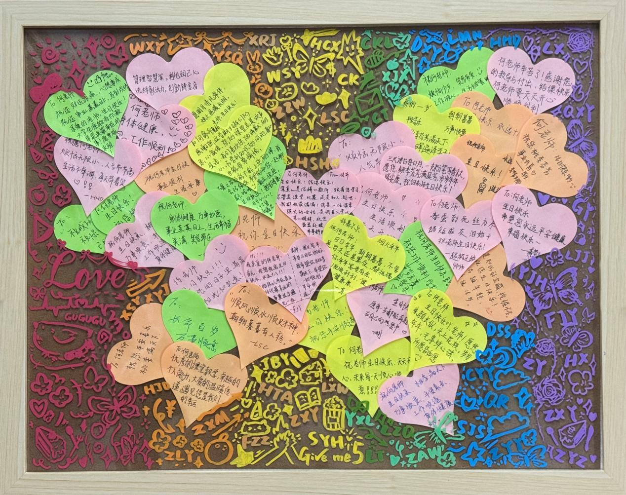学生从填表信息中“扒”出她的生日,悄悄准备40张手写贺卡,装裱成相框送到办公室。有人写“长命百岁”,有人写“蜡炬成灰泪始干”,字歪歪扭扭却透着真诚。何老师看到相框时眼泪差点掉下来说:“这比任何奖状都珍贵,学生把‘被看见’的温暖,又还给了我。”