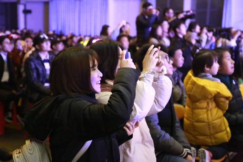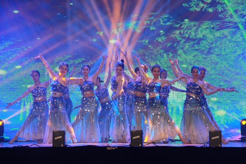 在繁忙的工作之余挤出时间排练,历时一个半月,每天伴着点点星光才踏上回家的路,就是为了此刻为观众舞上一曲,他们就是可爱可敬的教职工们。今夜,他们身着彩衣,伴着节拍,共舞《花开盛世》,为元旦献礼,为祖国改革开放40年献礼;如鱼般缓慢起落,又如鹰般直击长空。合唱队带来的歌曲《大鱼》,将观众带入梦幻世界;模特队、礼仪队的走秀节目《与青春的对话》,利用古代、民国、现代场景的转换,将古装、旗袍、休闲装融为一体,让台下观众有穿越时空之感;街舞队献上的街舞《fendiman》,激情的舞步舞出活力四射的青春,全场喝彩声不断,将晚会推向高潮。在改革开放40周年之际,大学生艺术队舞蹈团表演的歌舞《不忘初心》表达了对祖国的深情祝福,华丽的舞蹈、高昂的歌声和瑰丽的风光让观众沉醉其中,伴随着对新年的声声祝福,2019元旦晚会圆满落幕。