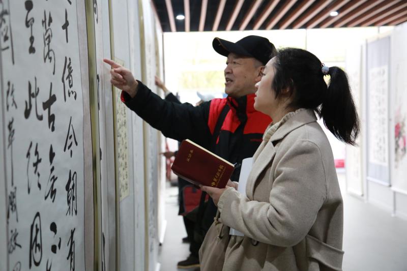 “这个作品可是要费点功夫的!你看这字整齐划一,小巧玲珑,虽没有磅礴的气势,但赏心悦目,让人过目不忘。”“可不是吗!字字见功夫呀,这字一笔一划都很考验手腕的力度。”几位书法爱好者围着一幅书法作品细细地品味着书法的韵味。其中一位年长者更是掏出了手机拍照放大来看笔法。机电工程学部电气2班学生吕洋感慨:“之前,我对书画不是很感兴趣,参观展览时就一直跟在几位老师后面,认真地听他们对字画的评述。虽然有些专业术语我也听不太明白,但我深深感受到了书画大师们‘追求卓越,精益求精’的工匠精神,也得到了艺术的熏陶。”