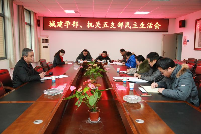 新闻网讯(记者刘侃)1月15日上午,我院领导班子在行政楼A315召开2018年度民主生活会,以“强化创新理论武装,树牢‘四个意识’、坚定‘四个自信’,勇于担当作为,以求真务实作风,坚决把党中央决策部署落到实处”为主题,紧密联系领导班子个人思想政治、精神状态、工作作风实际,开诚布公交流思想,动真碰硬开展批评和自我批评。院党委书记王军主持会议。