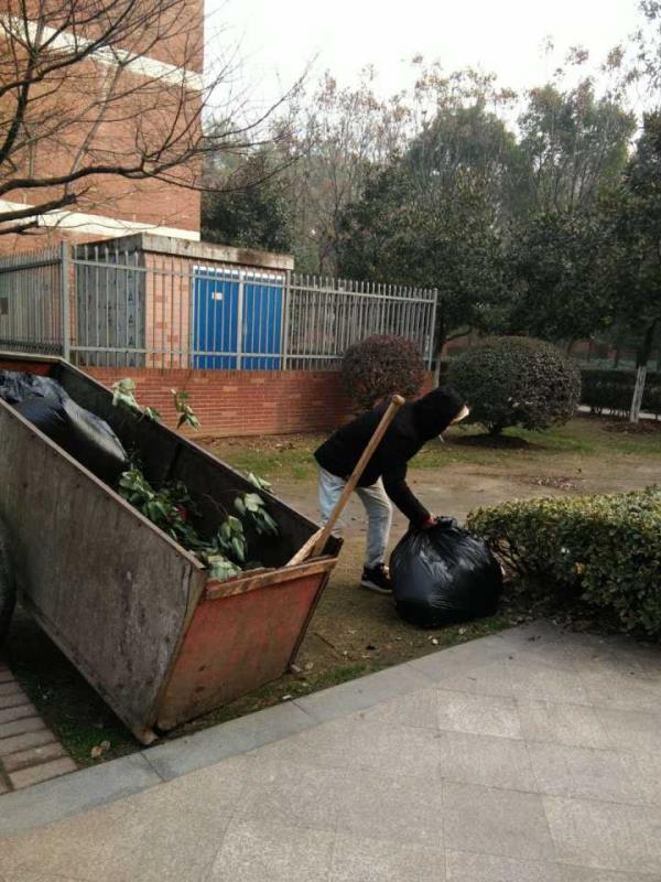 为营造一个喜庆祥和的校园环境和春节氛围,绿化和校园管理中心的员工将所有绿植进行修枝维护,每周安排值班人员对行政楼、学部楼等地进行清扫。