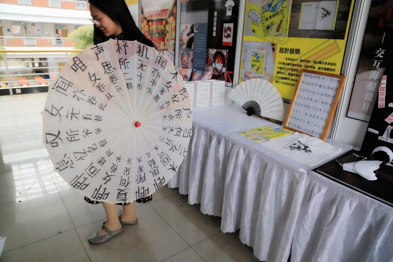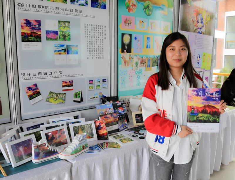 本次优秀毕业设计作品展展期三天,共展出70个展板、25件成衣、25个视频,环境设计、视觉传达设计、动画和服装与服饰设计4个专业的学生作品参展。作品种类丰富、形式多样,包括雕刻、海报设计、插画设计、字体设计、品牌设计、包装设计、刺绣、蜡染、编织等,特别是服装展览,曾获得第八届“石狮杯”全国高校毕业生服装设计大赛优秀奖的2015级服装专业学生谢娴雅设计的服装也在此展出。