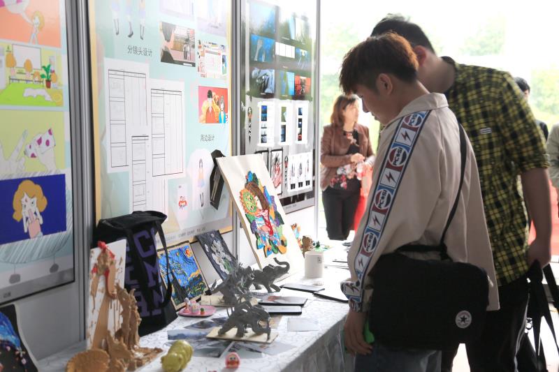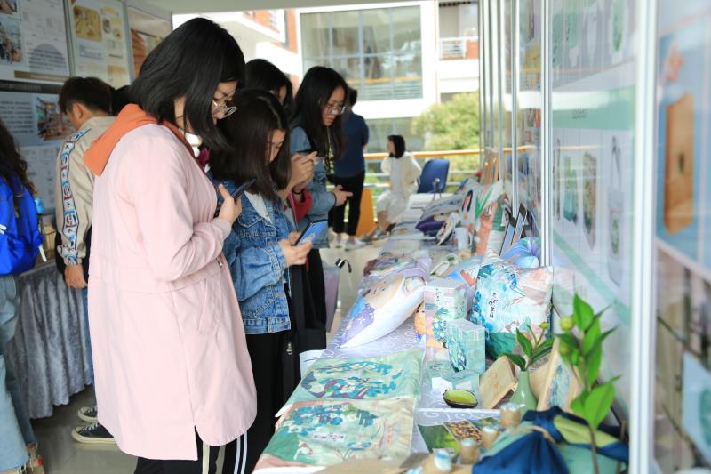 作品展吸引了不少师生前来参观,大家纷纷在此拍照留念。