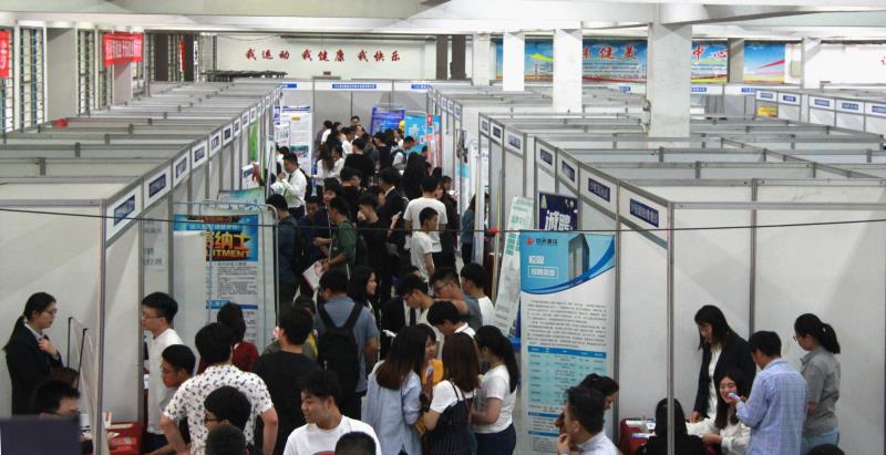新闻网讯(见习记者陈梦 刘玲含 李欣)5月9日,2019年春季大型校园招聘会在我院体育馆一楼举行。本次招聘会有135家单位参与,较去年有明显增加,就业和实习岗位覆盖了计算机、医药、经管、艺术、教育等多个学科领域,提供岗位3000多个。招聘会现场人头攒动,学生们的参与热情十分高涨,一上午进场求职的学生多达5000多名。