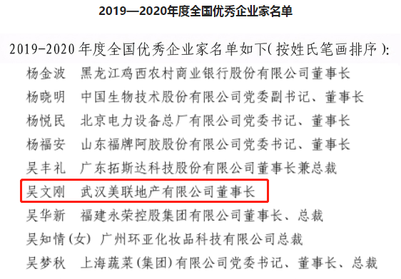 为贯彻落实《中共中央国务院关于营造企业家健康成长环境弘扬优秀企业家精神更好发挥企业家作用的意见》精神,进一步弘扬、激发和保护企业家精神,加快建设世界一流企业。经过民意推荐和评选,158名企业家被评为2019—2020年度全国优秀企业家。