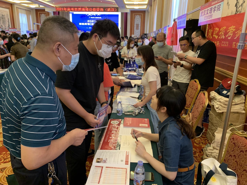 “我的成绩高出本科分数线5分,特别喜欢武汉城市学院,第一志愿报你们学校,录取的概率大不大?” 在招生宣传现场有一个考历史的考生询问招生老师,一边询问一边记录相关信息。