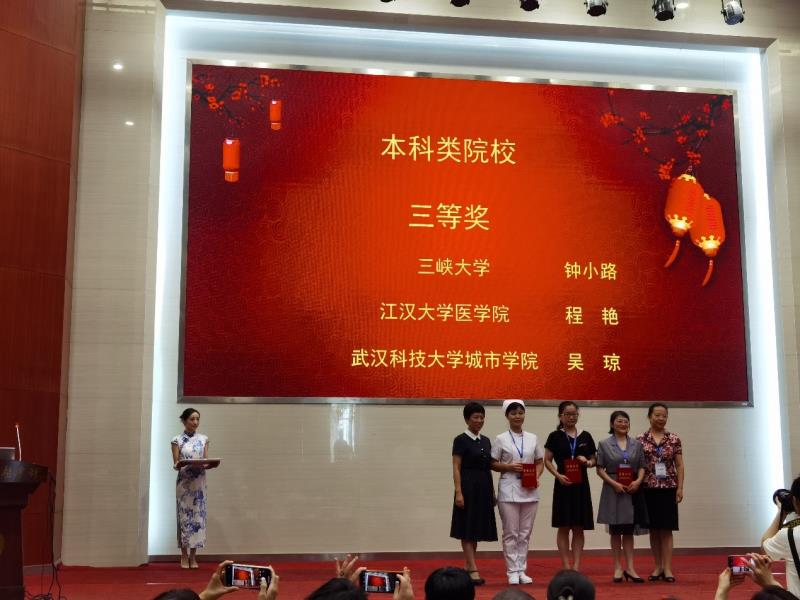新闻网讯(通讯员 杨欢 肖琛嫦)7月15日,湖北省首届高等护理院校青年教师讲课比赛颁奖大会在武汉大学医学部举行。我校医学部参赛教师吴琼在比赛中充分展示出优良的综合素质和高水准的授课能力,荣获本科组三等奖。
