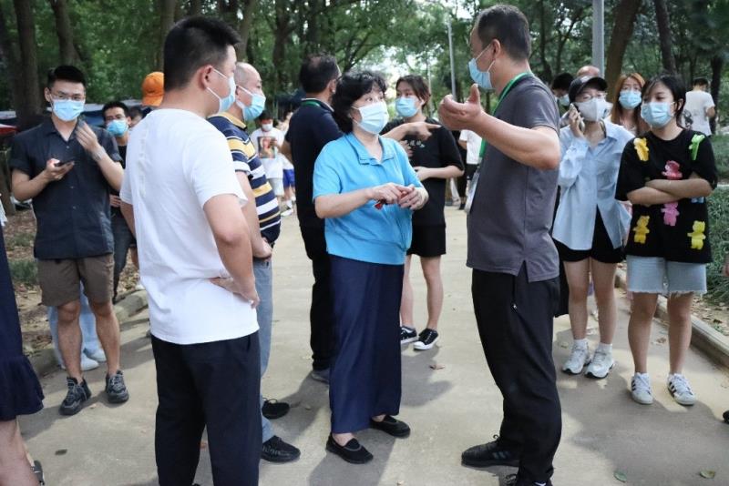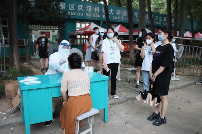 当日晚上7点,学校在医务室前为1000余名在校师生安排核酸检测,刘汛汛到现场指导工作。师生按照疫情防控要求保持安全间隔距离依次进行采样,采样结束迅速离开采样现场,核酸检测工作有序完成。