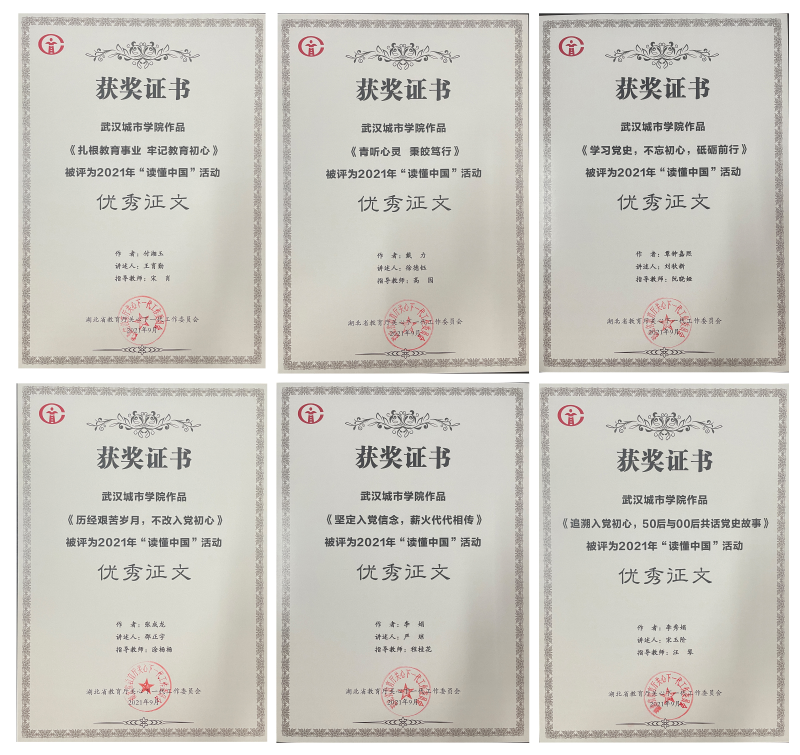 我校获奖征文《历经艰苦岁月,不改入党初心》由教师邵正宇讲述、学生张成龙撰写,《追溯入党初心,50后与00后共话党史故事》由教师宋玉阶讲述、学生李秀娟撰写,《扎根教育事业 牢记教育初心》由教师王育勤讲述、学生付湘玉撰写,《青听心灵 秉皎笃行》由教师徐德钰讲述、学生戴力撰写,《学习党史,不忘初心,砥砺前行》由教师刘秋新讲述、学生覃钟嘉熙撰写,《坚定入党信念,薪火代代相传》由教师严琼讲述、学生李娟撰写。