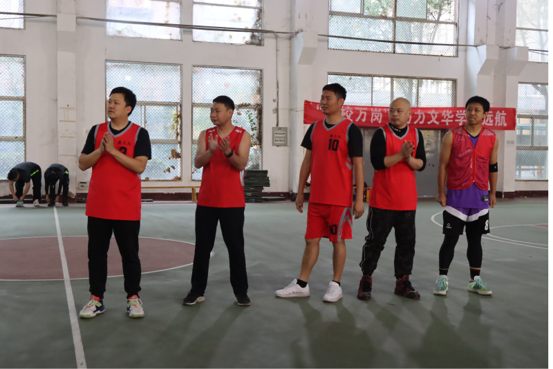 我校派出马浩林、彭辉、赵斌、白云、费晓亮、夏泽天6名教师参加篮球友谊赛,教师们你争我夺,展开一轮又一轮地投篮、防守、快攻,比分交替领先,每一次进球都伴随着场下师生的掌声和欢呼。